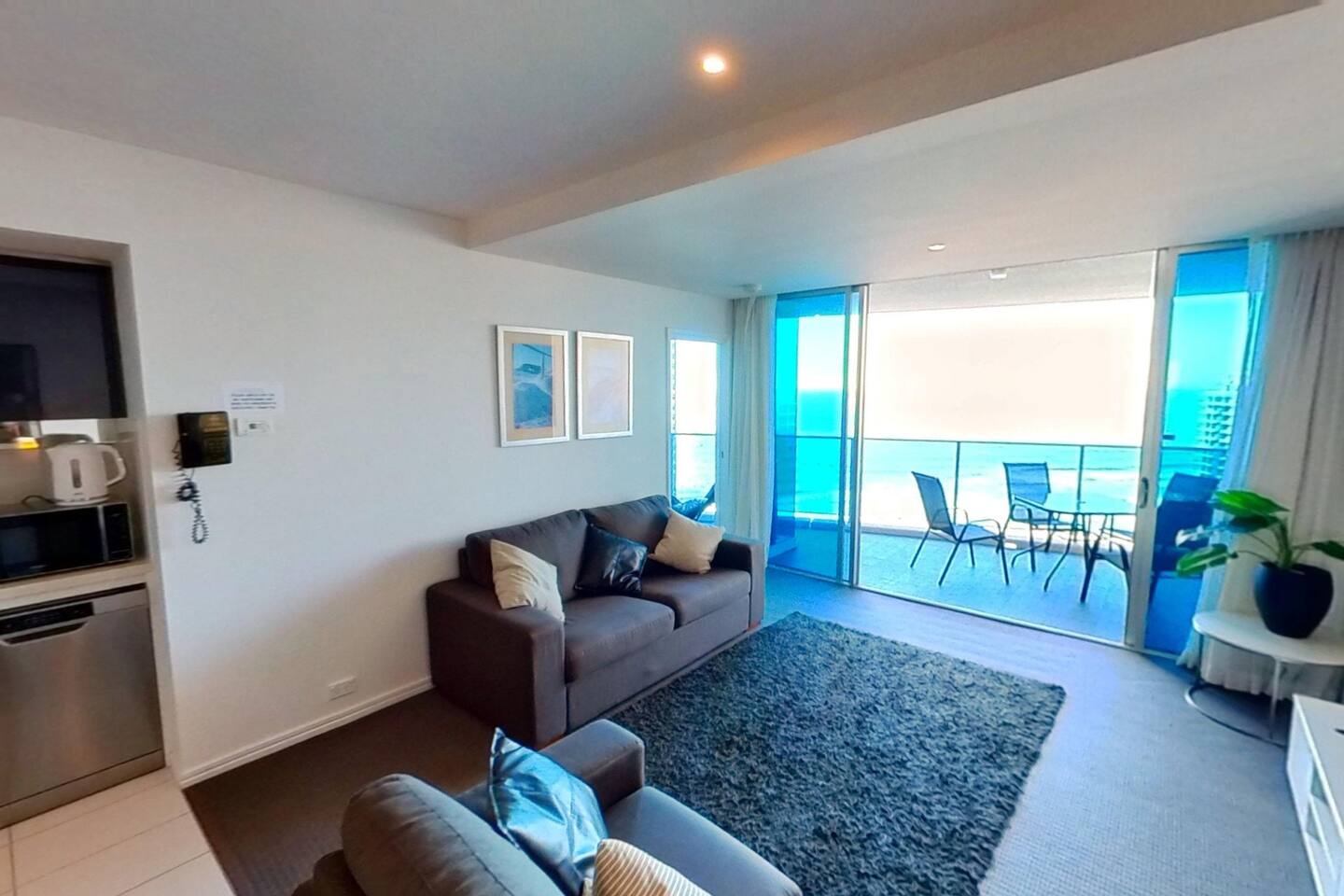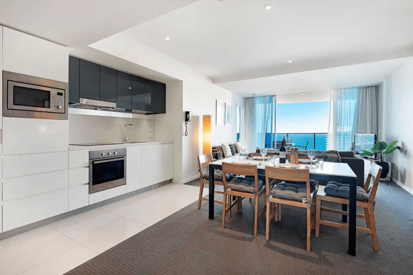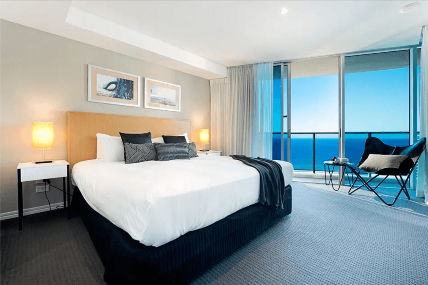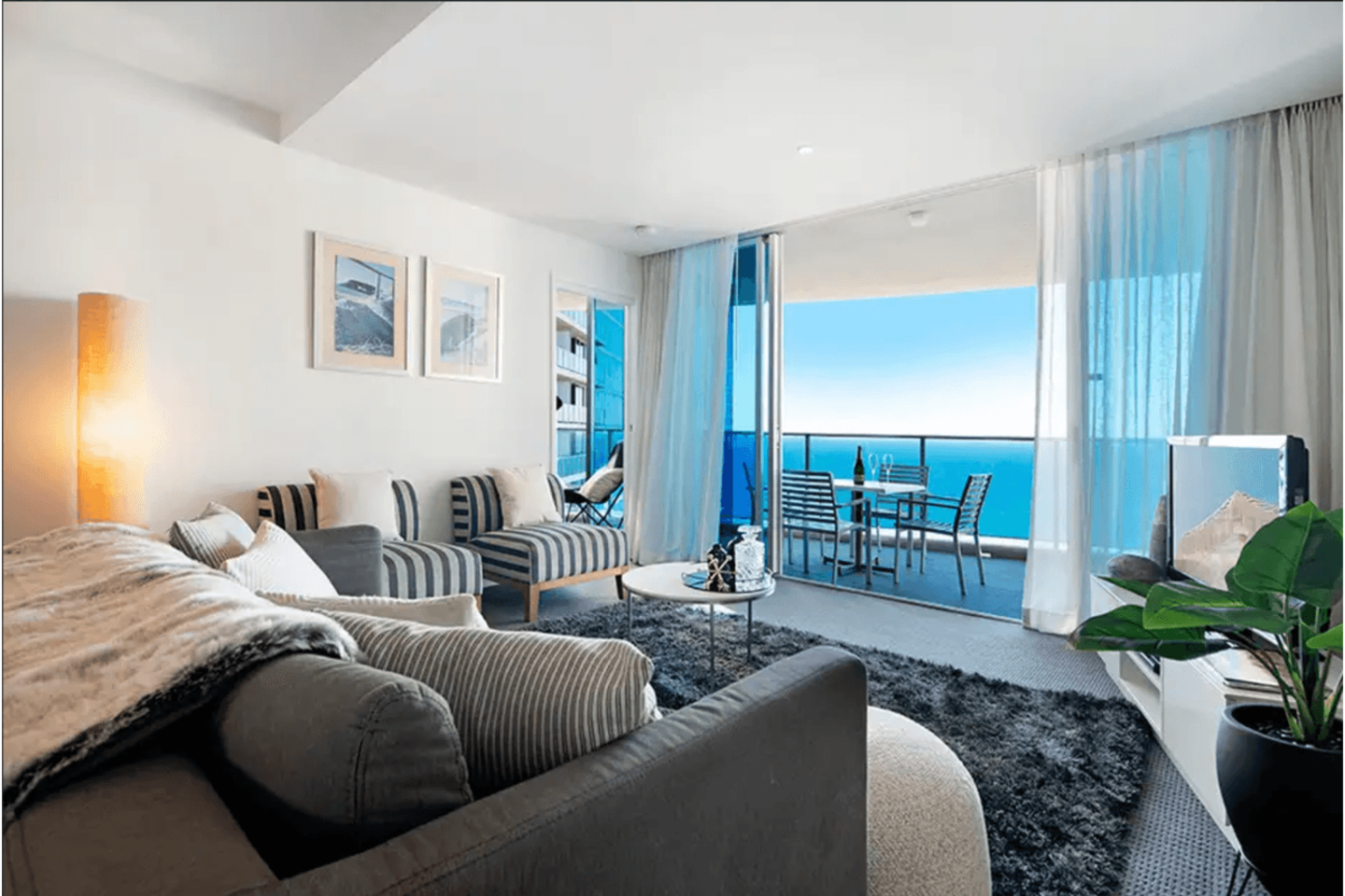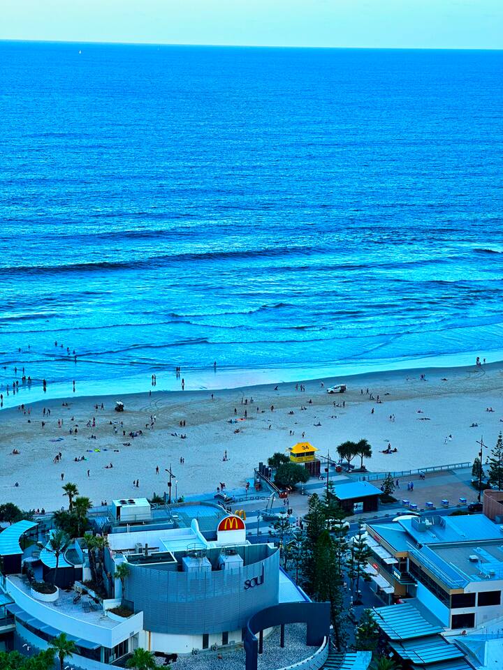 Located on the 27th floor in landmark Hilton building. This 2-bed, 2-bath apartment offers stunning Ocean, Surf, Cavil Ave and city views, a king master, balcony, fast WiFi, and two Smart TVs. Enjoy access to resort-style facilities shared by residents and Hilton-managed hotel units, as part of the building’s body corporate. 1 x Car Park included, Gym access, 4 pools + Massive Spa pool 💖 Add to your Wishlist by tapping the ❤️ in the top-right corner!
