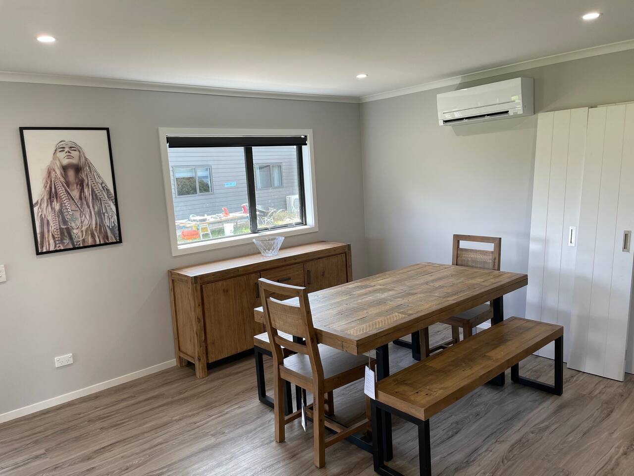 🌟 Welcome to our stunning Ohakune retreat! 🌟 Where luxury meets comfort, this brand-new build (completed in January 2022) offers the perfect escape for families, friends, or anyone seeking a memorable getaway. 🏞️ Location: Nestled in the picturesque Snowmass subdivision, with Mt Ruapehu as your breathtaking backdrop. Home Highlights: 🛏️ 5 Bedrooms, 2 Bathrooms: Ideal for families and groups, designed with spacious living in mind. 🛋️ Large Living Area: Perfect for family bonding and relaxation. 🌅 Expansive Deck with a covered area, Weber gas BBQ, and a soothing ♨️ spa pool — unwind in style while taking in the mountain views. Modern Comforts & Amenities: 🖼️ Architecturally designed for open living spaces with panoramic Mt Ruapehu views. 📺 Entertainment for All: Three large TVs, located in the lounge, master bedroom, and kids' room. Enjoy Netflix, Freeview, and select Sky channels on 50” and 55” screens. 🌐 High-Speed WiFi throughout the property. 🌡️ Comfort Control: Three heat pumps provide optimal heating and cooling, and Infinity gas ensures endless hot showers after a day on the slopes. Sleeping Arrangements: 🛌 Sleeping Arrangements: 1 King bed 2 Queen beds 1 Double sofa 4 Single beds (plus 1 trundler single) Sleeps 12 comfortably Sustainable & Eco-Friendly: 🌞 8kW Solar Panels: Power your holiday with clean energy. 🚗 Electric Car Charger: Tethered Type 2 charger available for eco-conscious travelers. Outdoor & Entertainment: ♨️ Spa Pool for ultimate relaxation after your adventures. 🍖 Weber Gas BBQ for al fresco dining with friends and family. Escape to comfort, convenience, and captivating views at our Ohakune retreat. Contact us to secure your stay in one of our three neighboring properties and experience the perfect blend of luxury and adventure.