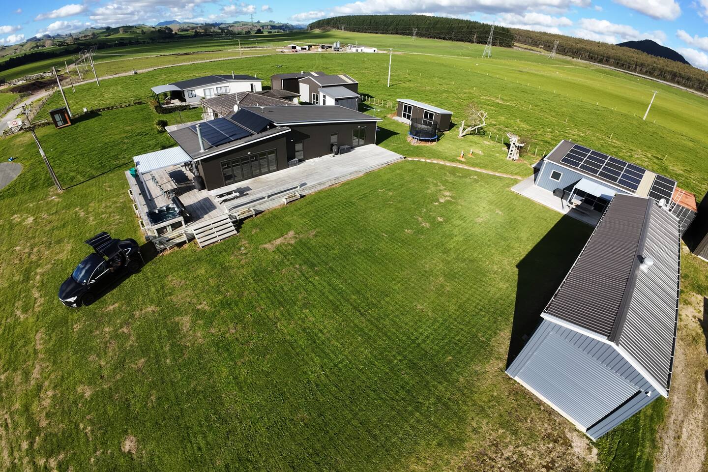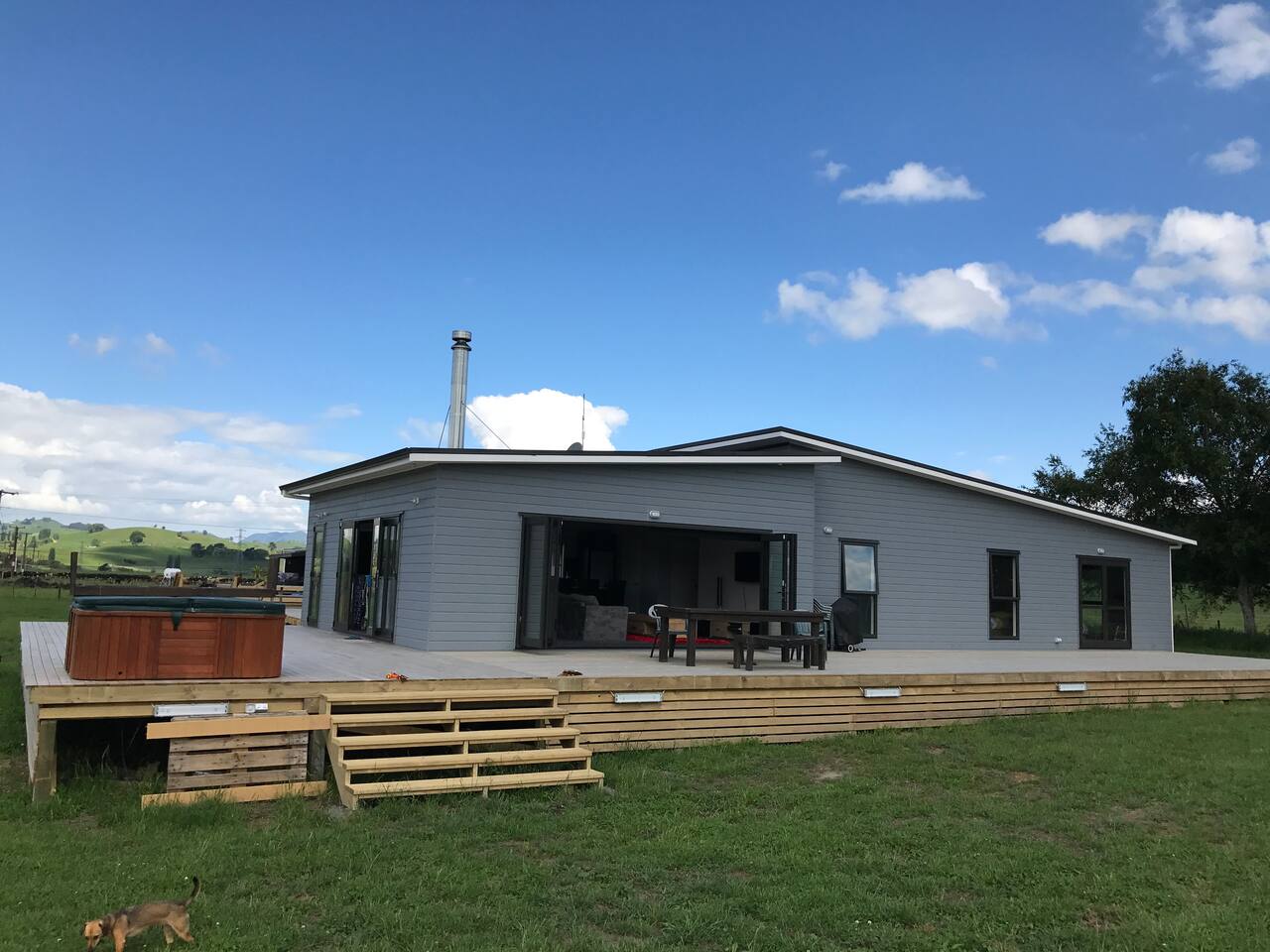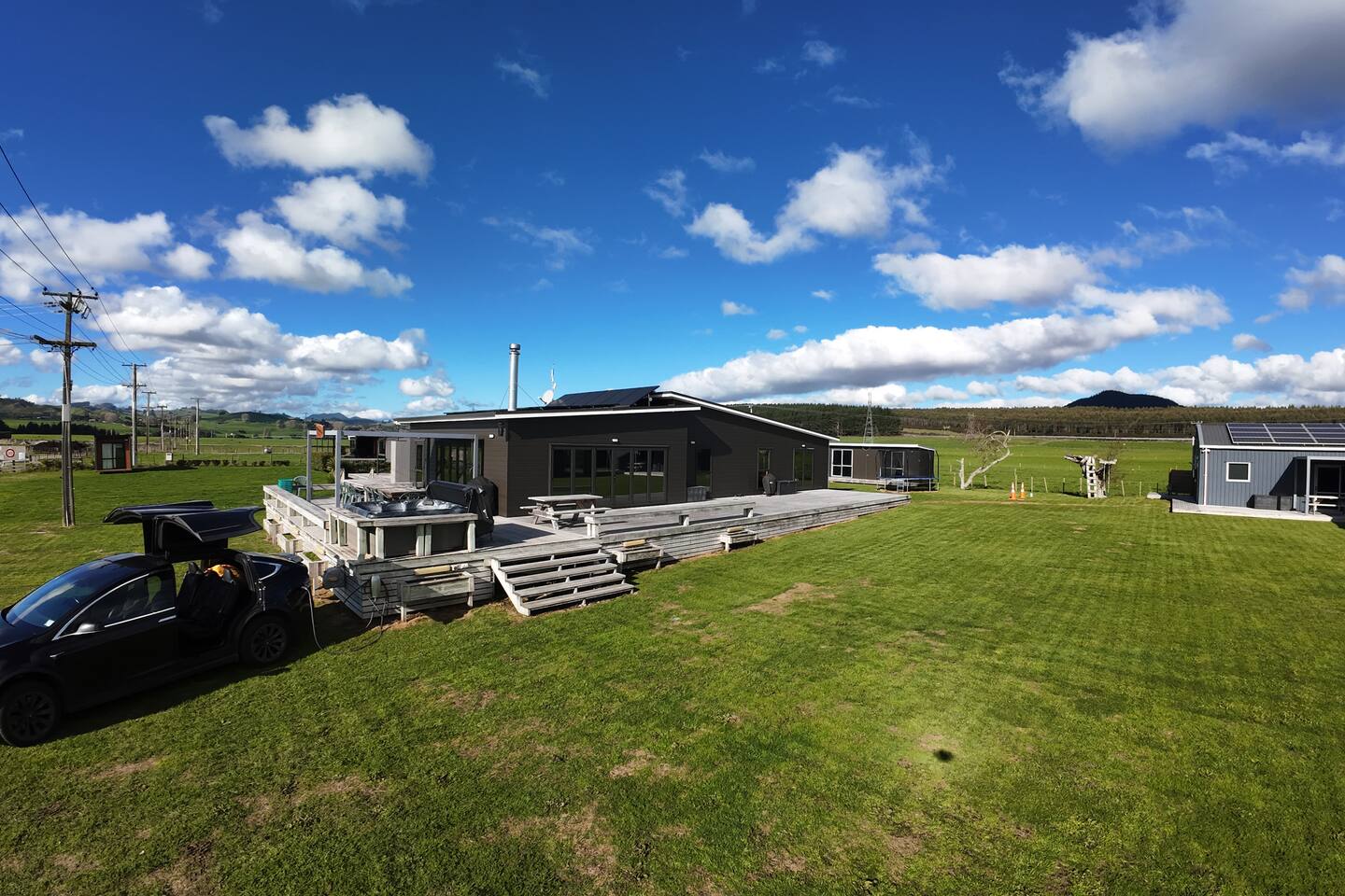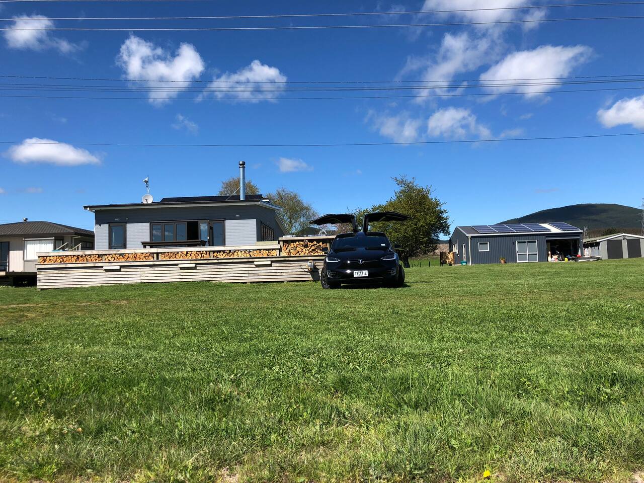 Double glazing, fireplace, 3 heat pumps & Spa pool under the stars! Lots of outdoor space, including two covered areas. Close to the lake (800m), great views of the farm and rolling hills, Lakes, Watersports, Mountain Biking, parks. All the bells and whistles for a luxurious stay while out in the rural outlook. Self Sufficient with 10kw solar and 14kw of battery storage + Tesla type 2 EV car charger Add our listing to your Wishlist by clicking the ❤️ in the upper-right corner.