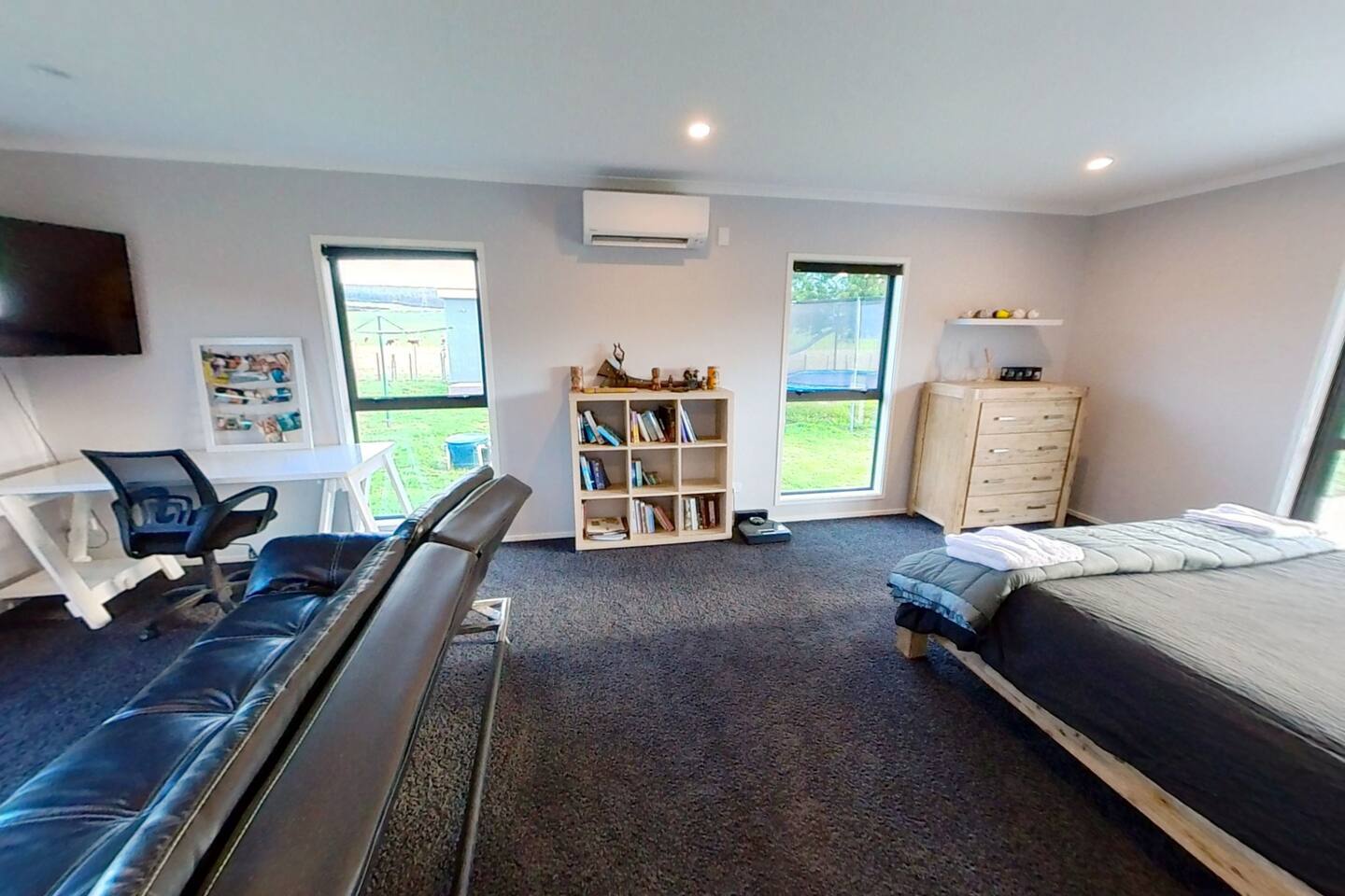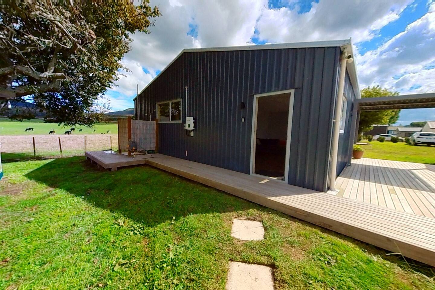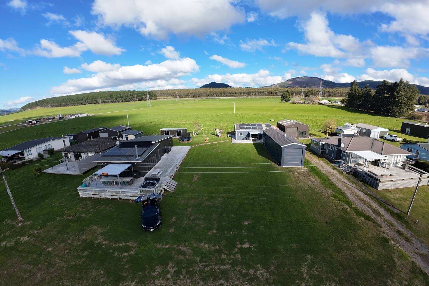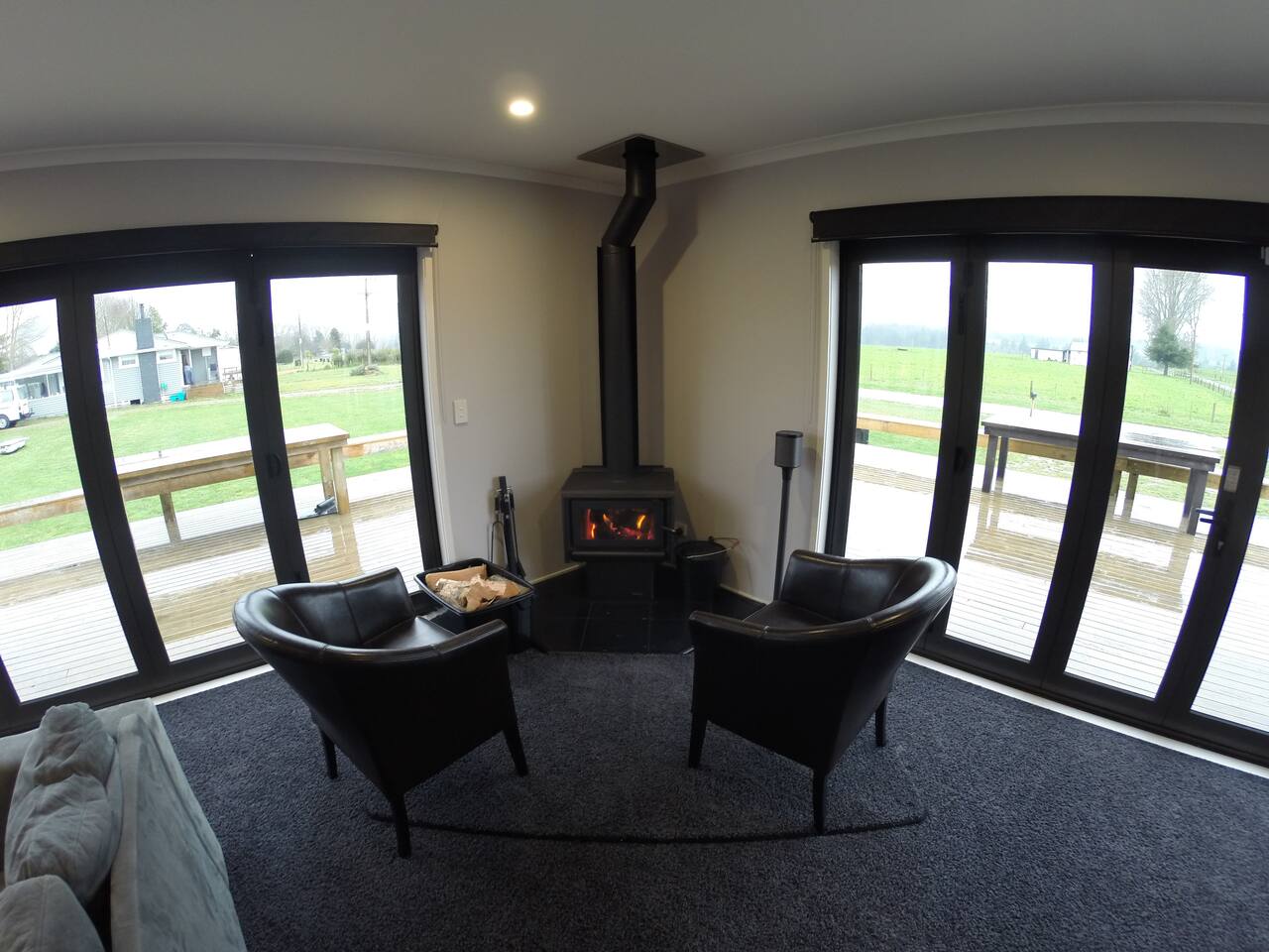 Double glazing, fireplace, 3 heat pumps & Spa pool under the stars! Lots of outdoor space, including two covered areas. Close to the lake (800m), great views of the farm and rolling hills, Lakes, Watersports, Mountain Biking, parks. All the bells and whistles for a luxurious stay while out in the rural outlook. Self Sufficient with 10kw solar and 14kw of battery storage + Tesla type 2 EV car charger Add our listing to your Wishlist by clicking the ❤️ in the upper-right corner.
